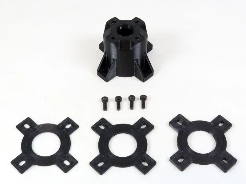 These mounts are 3D Printed from rugged PETG plastic and come in a variety of lengths to suit your specific application. Included with each mount are four M3 x 8mm socket head screws to attach your motor to the mount, along with a set of 3 spacer shims that can be put between the mount and firewall to fine tune the length of the mount to get the perfect gap between your prop or spinner and the front of your fuselage. The spacers are 1mm, 2mm and 3mm thick, so they can be used individually or stacked to add anywhere from 1 to 6mm of extra length to the mount.