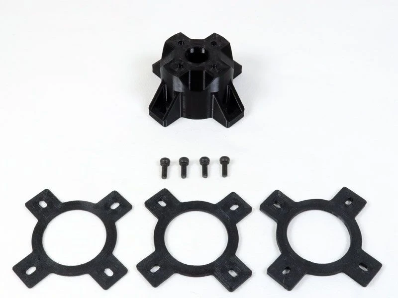 These mounts are 3D Printed from rugged PETG plastic and come in a variety of lengths to suit your specific application. Included with each mount are four M3 x 8mm socket head screws to attach your motor to the mount, along with a set of 3 spacer shims that can be put between the mount and firewall to fine tune the length of the mount to get the perfect gap between your prop or spinner and the front of your fuselage. The spacers are 1mm, 2mm and 3mm thick, so they can be used individually or stacked to add anywhere from 1 to 6mm of extra length to the mount.