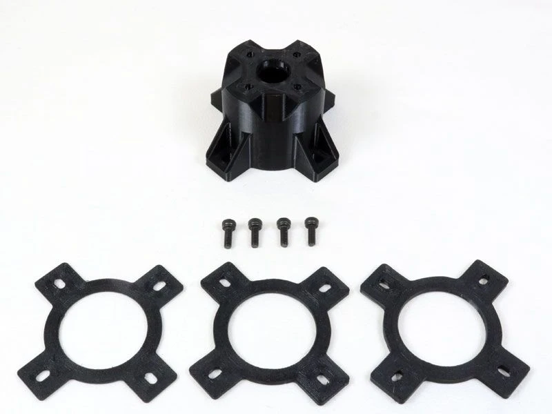 These mounts are 3D Printed from rugged PETG plastic and come in a variety of lengths to suit your specific application. Included with each mount are four M3 x 8mm socket head screws to attach your motor to the mount, along with a set of 3 spacer shims that can be put between the mount and firewall to fine tune the length of the mount to get the perfect gap between your prop or spinner and the front of your fuselage. The spacers are 1mm, 2mm and 3mm thick, so they can be used individually or stacked to add anywhere from 1 to 6mm of extra length to the mount.