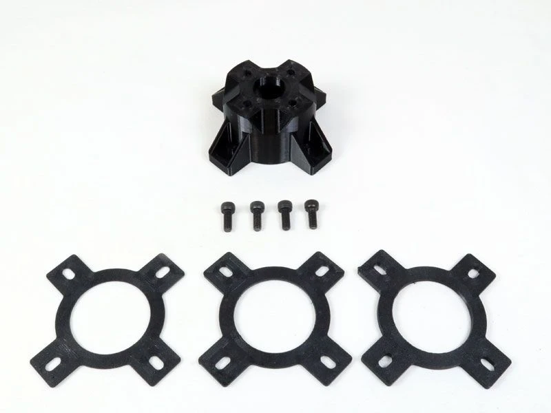 These mounts are 3D Printed from rugged PETG plastic and come in a variety of lengths to suit your specific application. Included with each mount are four M4 x 10mm socket head screws to attach your motor to the mount, along with a set of 3 spacer shims that can be put between the mount and firewall to fine tune the length of the mount to get the perfect gap between your prop or spinner and the front of your fuselage. The spacers are 1mm, 2mm and 3mm thick, so they can be used individually or stacked to add anywhere from 1 to 6mm of extra length to the mount.