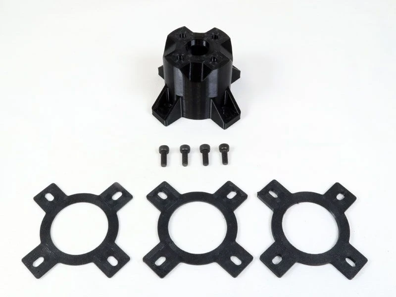 These mounts are 3D Printed from rugged PETG plastic and come in a variety of lengths to suit your specific application. Included with each mount are four M4 x 10mm socket head screws to attach your motor to the mount, along with a set of 3 spacer shims that can be put between the mount and firewall to fine tune the length of the mount to get the perfect gap between your prop or spinner and the front of your fuselage. The spacers are 1mm, 2mm and 3mm thick, so they can be used individually or stacked to add anywhere from 1 to 6mm of extra length to the mount.