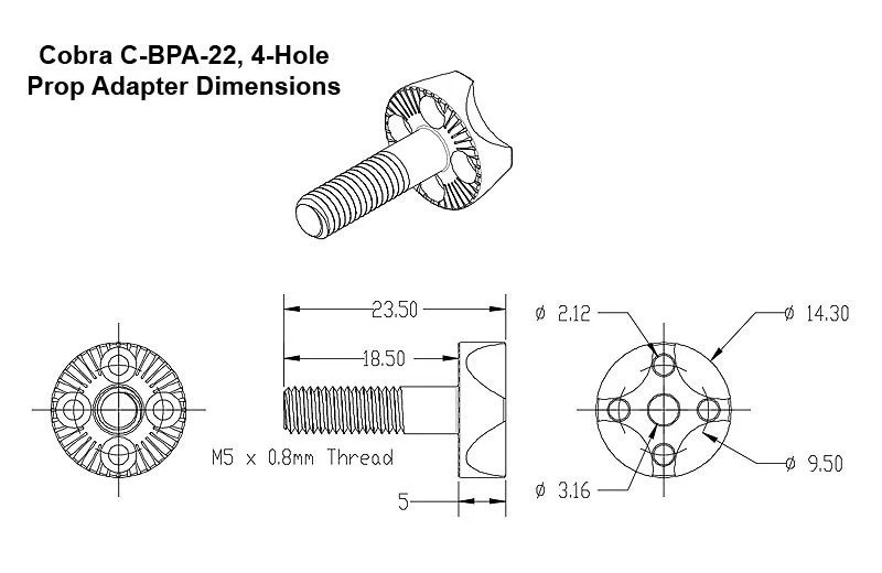 ● Bolt-On style threaded prop adapter with 4 screws