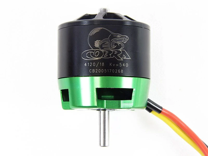 The Cobra 4120 series motors have a 6.0mm shaft for extra strength, as well as oversize ball bearings to support the shaft and provide a long life. There are two internal bearing measure 12mm x 6mm x 4mm and the outer bearing measures a massive 17mm x 6mm x 6mm! The stators are made with 0.20mm laminations for maximum efficiency and minimum Eddy Current losses. Also included on the motor are ultra-flexible motor leads with high-temp silicone rubber insulation and 4.0mm bullet connectors already installed.