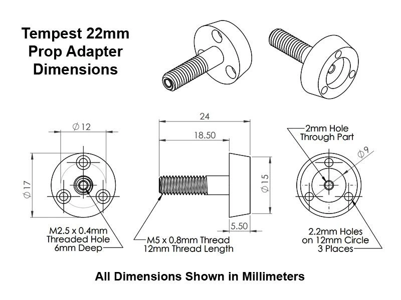 CLICK HERE to Download the CAD STEP file of the Tempest 2213 motor with the Prop Adapter and Cross Mount attached